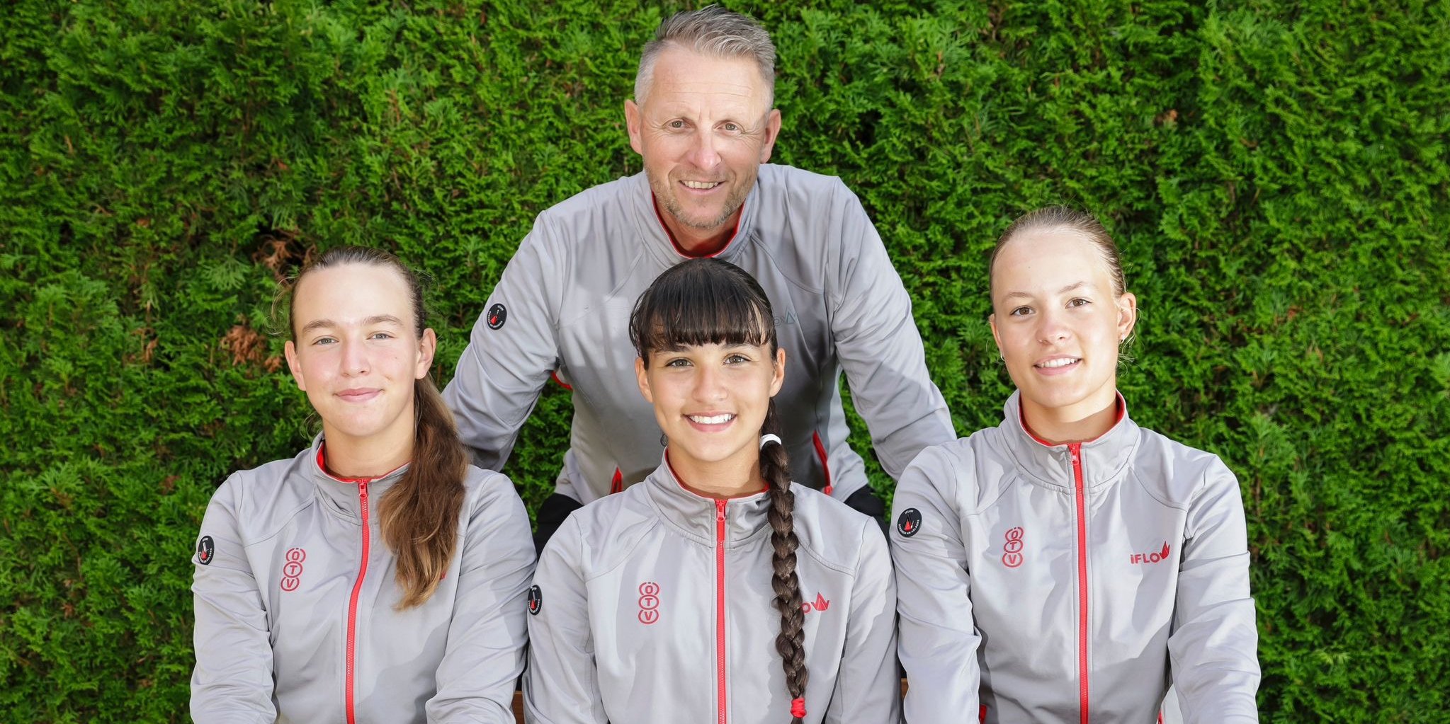 Österreichs erfolgreiches Team. Hinten: ÖTV-U14-Nationaltrainer Franz Kresnik. Vorne von links nach rechts: Anna Pircher, Kara Fronek, Lea Haider-Maurer.