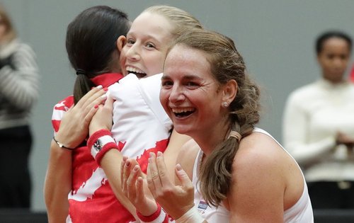 Die Überraschung ist perfekt: Das Alpstar Austria Billie Jean King Cup Team hat den Coup im Play-off gegen Lettland geschafft. Die ÖTV-Damen-Nationalauswahl setzte sich, bei ihrem ersten Heimmatch seit April 2008, vor begeisterten Fans im Multiversum Schwechat gegen die favorisierten Baltinnen knapp mit 3:2 durch. Das eingespielte Duo Melanie Klaffner und Sinja Kraus stellte hierbei im alles entscheidenden Doppel den Sieg für die Mannschaft von Kapitänin Marion Maruska sicher. Die Oberösterreicherin und die Wienerin bezwangen Diana Marcinkevica und Jelena Ostapenko nach rund 1:21 Stunden Spielzeit mit 7:5, 6:3 und sorgten für Jubelströme in Rot-weiß-rot – Sektduschen für alle Beteiligten inklusive, auch für die diesmal nicht zum Einsatz gekommene Barbara Haas, Teammasseur Werner Farmer, Physiotherapeutin Katrin Müllner und Veranstalter Florian Leitgeb von der Agentur Champ Events.