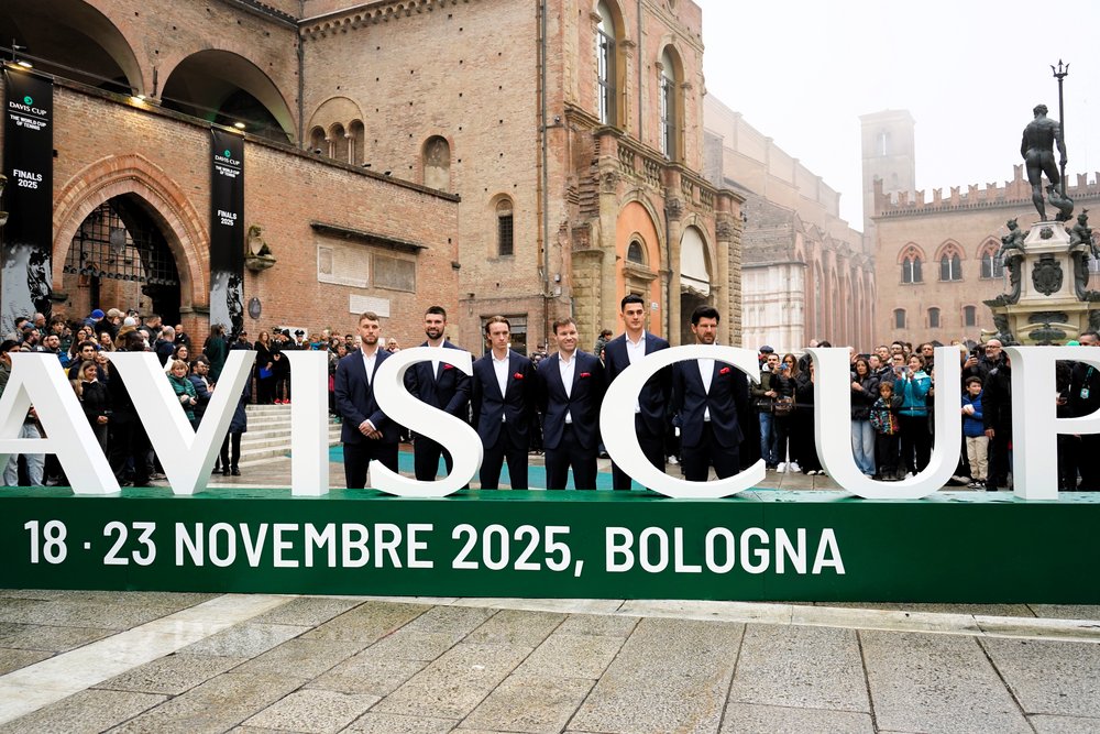 Das KURIER Austria Davis Cup Team ist am Samstagmorgen zu den Davis Cup Final 8 in Bologna abgereist – und bereitet sich seither gewissenhaft auf den Viertelfinalschlager am Mittwoch ab 16:00 Uhr (live auf ORF 1 und auf ÖTV TV unter www.oetv.tv) gegen den zweifachen Titelverteidiger und Gastgeber Italien vor. Am Sonntag stand zunächst noch eine Zusammenkunft auf dem Programm: Beim traditionellen Welcome Event im Palazzo Re Enzo im Stadtzentrum wurde das Finalturnier stilgerecht eingeläutet. ITF-Präsident David Haggerty begrüßte die Teams persönlich, die sich für dieses Event in bestechende Schale geworfen hatten und damit, auf einem grünen Teppich entlang schreitend, auch die Beobachter:innen auf dem Piazza del Netuno verzückten. Das KURIER Austria Davis Cup Team machte dabei in einem Outfit des Wiener Herrenbekleiders Sturm am Parkring exzellente Figur.