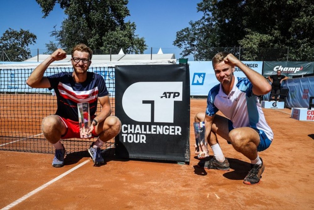 Der Aufgalopp für den vorletzten Turniertag der NÖ Open powered by EVN 2024 hätte kaum kurzweiliger ausfallen können. Das Doppelendspiel zwischen den an Nummer zwei gesetzten Polen Karol Drzewiecki (28 Jahre; ATP-Doppel 128) und Piotr Matuszewski (26 Jahre; ATP-Doppel 105) gegen Vitaliy Sachko (27 Jahre; ATP-Doppel 320) und Milos Karol (21 Jahre; ATP-Doppel 260, zuletzt übrigens mit wechselnden Partnern Sieger bei den ITF-M15-Turnieren in Ollersbach, Arad in Rumänien und Wien) bot nämlich alles, womit der flotte Tennisvierer aufzuwarten hat. Taktische und einfach krachende Aufschläge, gefinkelte und brachiale Returns und einstudierte wie improvisierte Spielzüge auch am Netz. Am Ende war es dann das ukrainisch-slowakische Paar Sachko/Karol, das ja schon im Semifinale die Österreicher Gerald Melzer und Lukas Neumayer eliminiert hatte, die sich in ihrer Siegeransprache nach dem engen 6:4, 3:6, 11:9 durchaus nicht zu Unrecht als die Glücklicheren bezeichnen durften – und den ersten gemeinsamen Titel gebührend zu feiern verstanden.