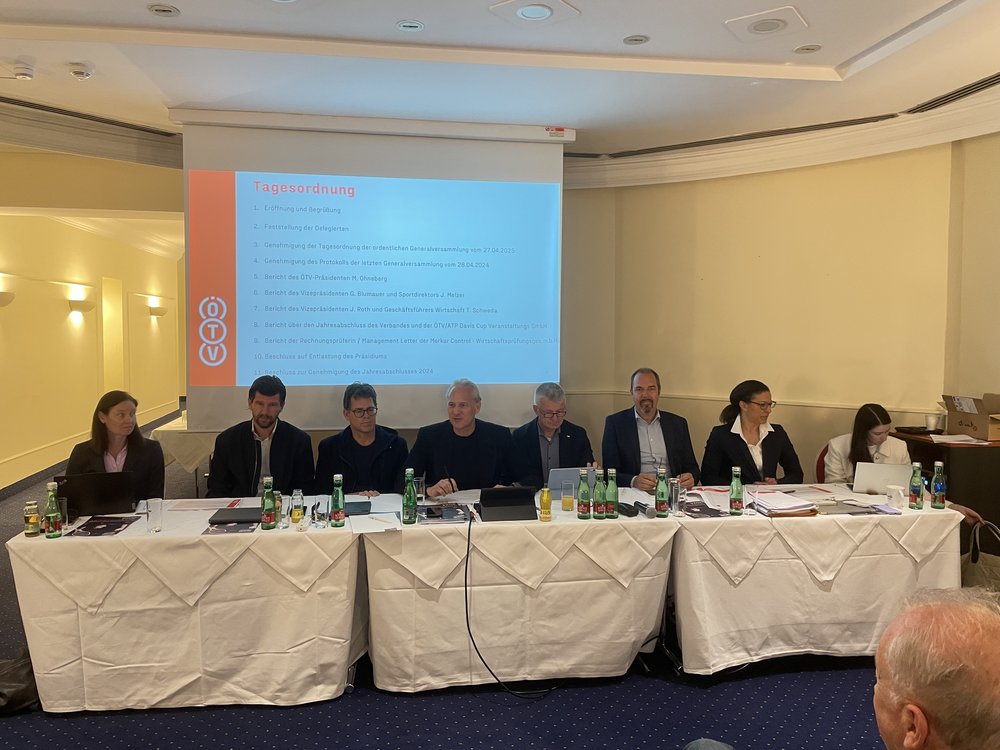 Abgeschlossen wurde die alljährliche, große Zusammenkunft am Sonntag mit der finalen Generalversammlung, der am Rednertisch neben dem Präsidium auch ÖTV-Sportdirektor und -Davis-Cup-Kapitän Jürgen Melzer, zudem ÖTV-Geschäftsführer Wirtschaft Thomas Schweda, ÖTV-Sportkoordinatorin und -Billie-Jean-King-Cup-Kapitänin Marion Maruska sowie Katharina Wagner (Assistenz der Geschäftsführung Wirtschaft) beiwohnten. ÖTV-Präsident Ohneberg zog anschließend ein zufriedenes Fazit über ein langes Wochenende mit Generalversammlung, Präsidentenkonferenz und intensiver Ausschussarbeit, welche „in Summe sehr, sehr erfolgreich erledigt worden ist. Es waren alle da, um hochmotiviert für den österreichischen Tennissport zu arbeiten. Wir haben viele wichtige Hinweise und Entwicklungen in den Ausschüssen diskutiert. Wir konnten von der Wirtschaftsprüfung bestätigt bekommen, dass unser Jahresabschluss 2024 ordentlich erstellt worden ist – mit uneingeschränktem Bestätigungsvermerk, was in Zeiten wie diesen auch nicht ganz selbstverständlich ist. Es ist von allen Mitarbeiter:innen in der ÖTV-Geschäftsstelle also sehr, sehr gut gearbeitet worden. Das Präsidium ist zudem von der Generalversammlung entlastet worden. Und einer Satzungsänderung wurde zugestimmt. Gemeinsam mit den Präsident:innen aller Landesverbände können wir uns glücklich schätzen, dass wir eine gute und erfolgreiche Generalversammlung für Österreichs Tennissport gehabt haben.“
