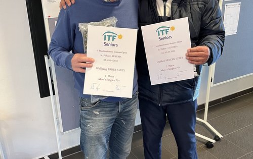 Bei den Herren sind neben den Titelträgern Alexander Moser (30+), Jürgen Florian (45+), Friedrich Tschernuth (60+) und Walter Solarovsky (75+) besonders Peter Misik (Slowakei, 65+) und Herbert Krippner (55+) zu erwähnen, welchen neben den jeweiligen Einzeltiteln mit ihren Partnern Jan Cerovsky (Slowakei) bzw. Ramin Madaini auch der Doppelsieg nicht zu nehmen war. Krippner holte sich nach seinem Titel in Portoroz im Oktober 2021 seinen zweiten Turniersieg auf internationaler Ebene in unmittelbarer Reihenfolge.