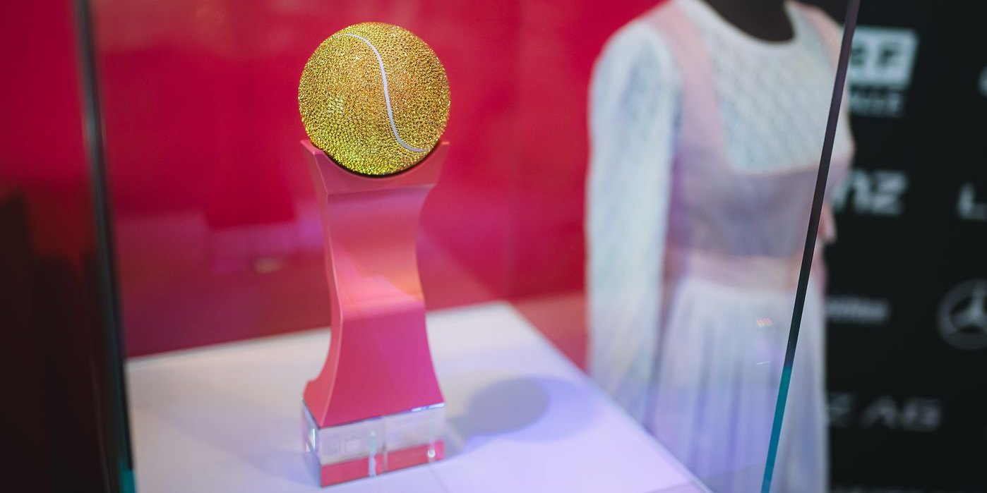 Die Trophäe wird gekrönt von einem Tennisball, der über und über mit feinen Swarovski-Kristallen besetzt ist, und Präzision, Intensität und den Höhepunkt athletischer Exzellenz verkörpert. Das Zusammenspiel des Lichts ruft den Kontaktpunkt zwischen Schläger und Ball hervor und repräsentiert einen Moment der Spannung, Kraft und des Triumphes. Die Gewinnerinnentrophäe zeigt Swarovskis außergewöhnliche Handwerkskunst, Kreativität und unendliches Savoir-faire. Sie symbolisiert den Weg zur Meisterschaft: klar und transparent an der Basis, elegant und kraftvoll im Kern und strahlend im Moment des Sieges.