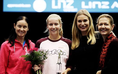 Auch das Upper Austria Ladies Linz setzt jedes Jahr ein starkes Zeichen für Frauen im Tennissport. Von links nach rechts: ÖTV-Sportkoordinatorin, -Billie-Jean-King-Cup-Kapitänin und -Genderbeauftragte Marion Maruska, Österreichs Nummer 2 Sinja Kraus, Ex-Weltklassespielerin und Turnierbotschafterin Barbara Schett-Eagle, Turnierdirektorin Sandra Reichel.