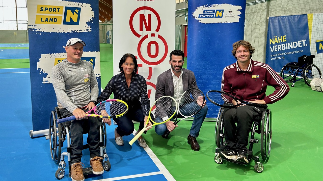 Am frühen Nachmittag des 3. Oktober fanden sich in der Tennishalle im SPORTZENTRUM Niederösterreich in St. Pölten die Initiator:innen rundum NÖTV-Präsidentin Petra Schwarz und LH-Stellvertreter und Sportlandesrat Udo Landbauer ein, um das Projekt der Öffentlichkeit zu präsentieren. Mit vollem Elan als begeisterte Schirmherren ebenfalls am Podium: Österreichs beste Rollstuhltennisspieler, die mehrfachen Paralympics-Starter Nico Langmann und Josef Riegler.