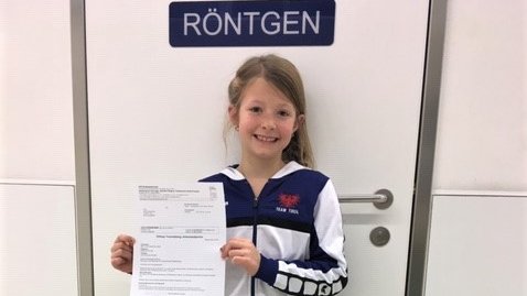 Leider war die Reise nach Leibnitz für eine unserer TTV Kaderspielerinnen, Alina Ennemoser, nur von kurzer Dauer. Im 2.Spiel am ersten Tag (beim ersten Spiel nach gutem Kampf leider verloren) kam es im ersten Satz zum Tiebreak, welches Alina dominierte. Sie lag bereits mit 5:2 voran, knickte jedoch bei einem Ballwechsel unglücklich um und verletzte sich am rechten Sprunggelenk. Obwohl sie nicht mehr richtig auftreten bzw. laufen konnte, versuchte sie tapfer weiterzuspielen, verlor aber das Tiebreak mit 7:5 und den zweiten Satz mit 1:4. Nach einem anschließenden Besuch im KH Leibnitz wurde festgestellt, dass sie einen Einriss in der Wachstumsfuge erlitten hatte und daher die restlichen Spiele W.O. geben musste. Gott sei Dank bekam sie keinen Gips verpasst, sondern nur eine Schiene für 3 Wochen. Schade...aber bestimmt kann Alina bald wieder der geliebten gelben Filzkugel nachjagen.
