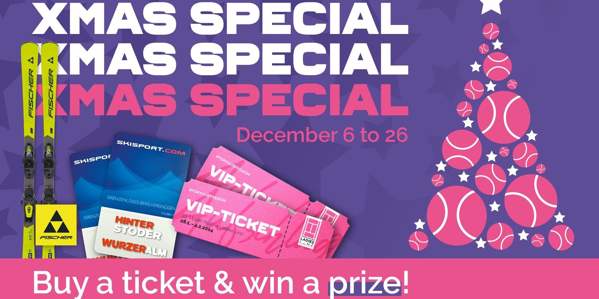 Es weihnachtet sehr! Eine Geschenkidee für das bevorstehende Weihnachtsfest hat sich Sandra Reichel als Turnierdirektorin des Weltklasse-Damentennis-Klassikers Upper Austria Ladies Linz 2024 ausgedacht. Wer bis 26. Dezember 2023 ein Ticket für das WTA-500-Turnier, das vom 28. Jänner bis 4. Februar 2024 im Design Center Linz ausgetragen wird, im Vorverkauf erwirbt, nimmt am traditionellen Weihnachts-Gewinnspiel teil.
